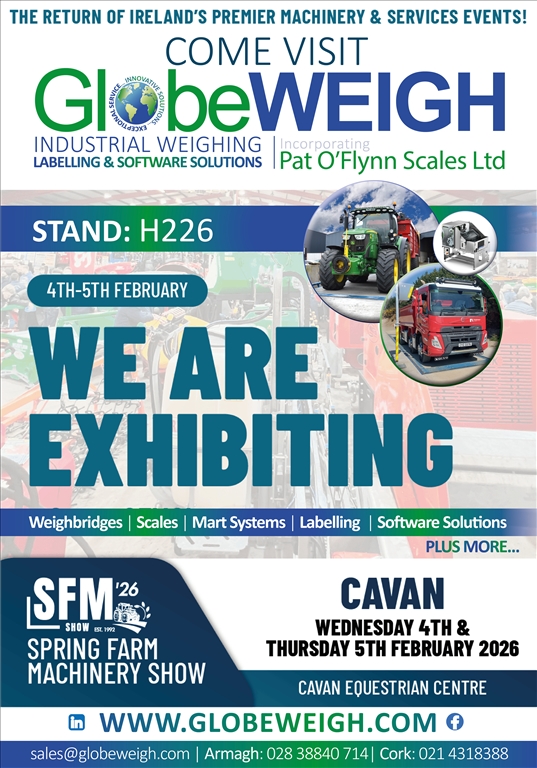 We’re excited to announce that GlobeWeigh will be exhibiting at the Cavan Spring Farm Machinery Show on 4th & 5th February at the Cavan Equestrian Centre!